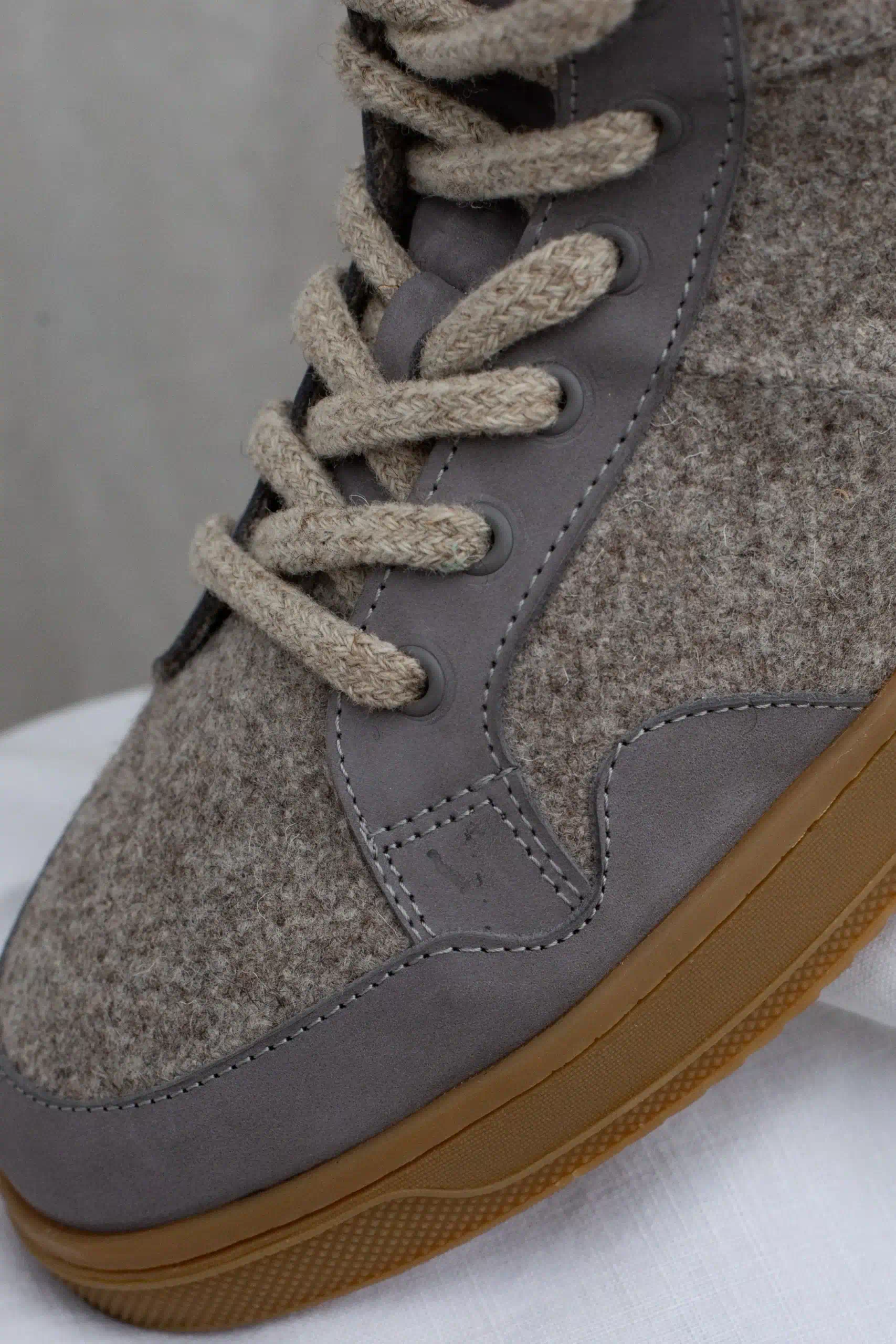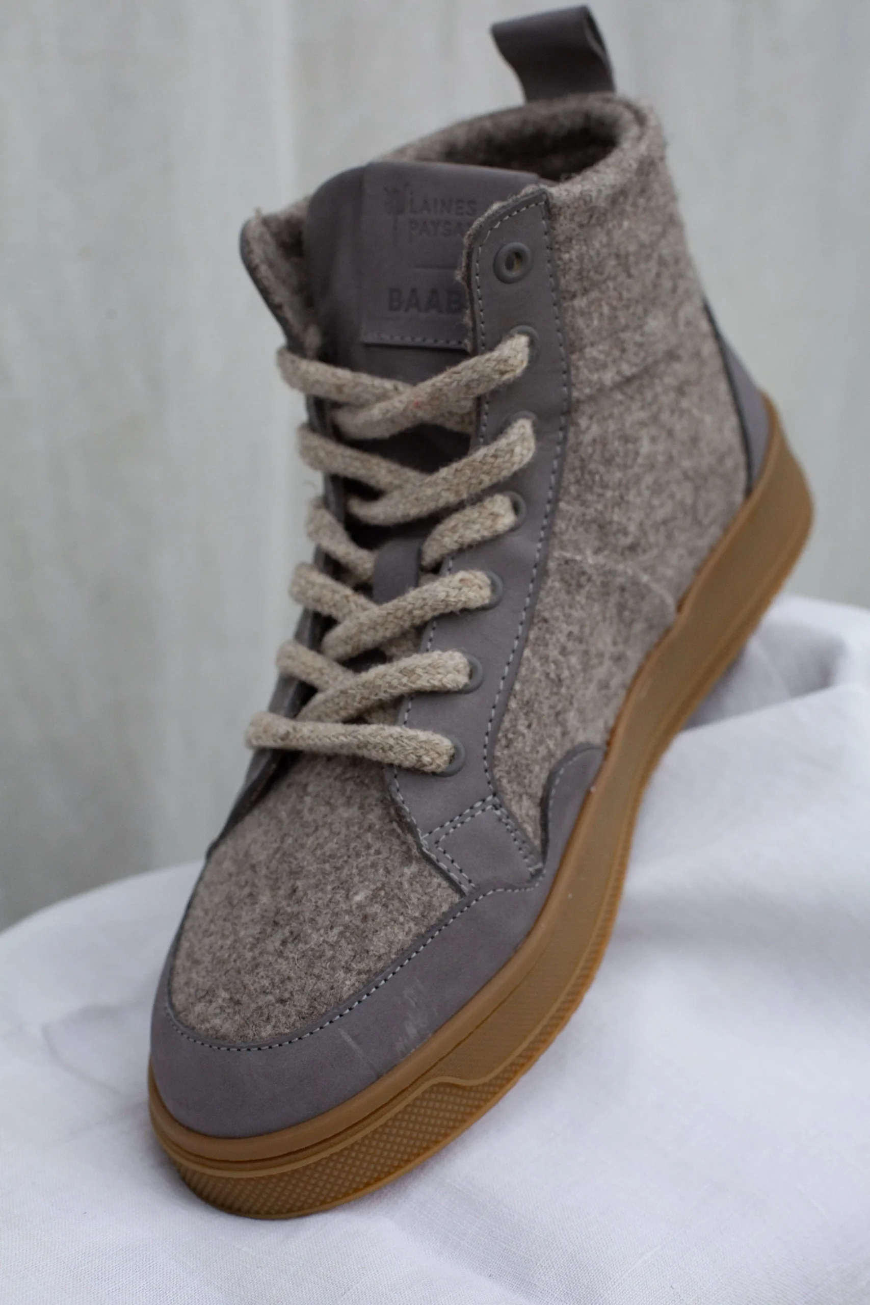 Signée Laines Paysannes X BAABUK, la basket Cimes propose un style un brin anticonformiste qui assume sa singularité naturelle en ville comme à la campagne.